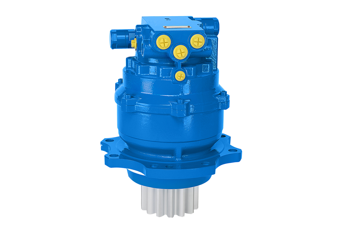 产品简介:LSMN16-21 回转马达为斜盘式直轴液压马达驱动的回转装置。马达内部装有补油阀、回转制动器、溢流阀等辅件,保证了回转装置运转平稳,安全可靠。特点:结构简单、体积小、噪音低。